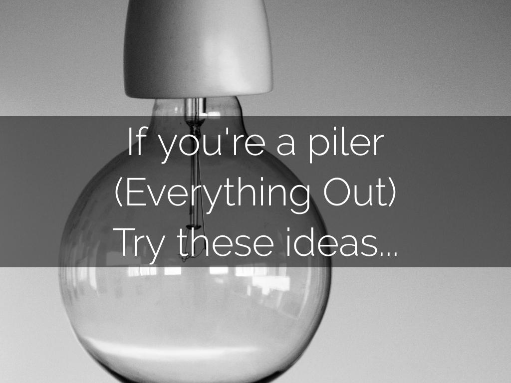 Everything Out personalities often refer to themselves as 'pilers'... leaving piles in their path. If you do this often, here are some quick and easy tips to help yourself!