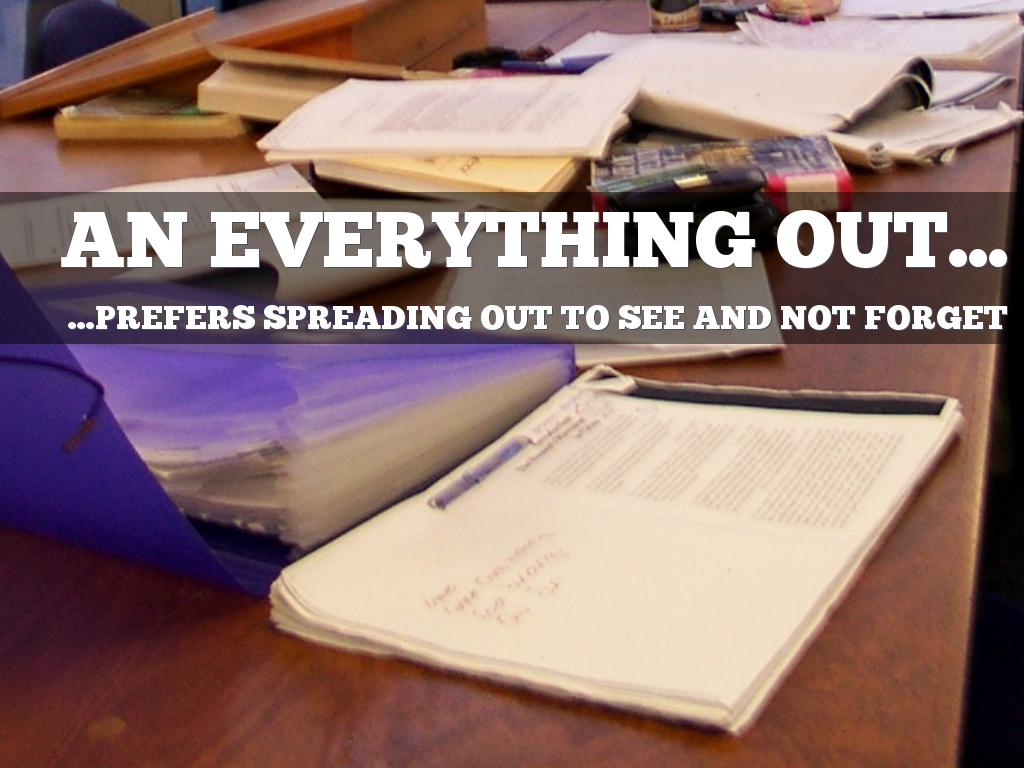 It may be difficult for others to navigate around an Everything Out's piles and reminders.