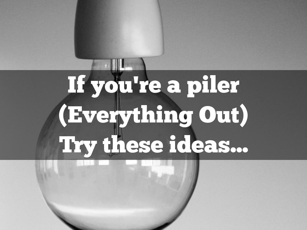 Everything Out personalities often refer to themselves as 'pilers'... leaving piles in their path. If you do this often, here are some quick and easy tips to help yourself!