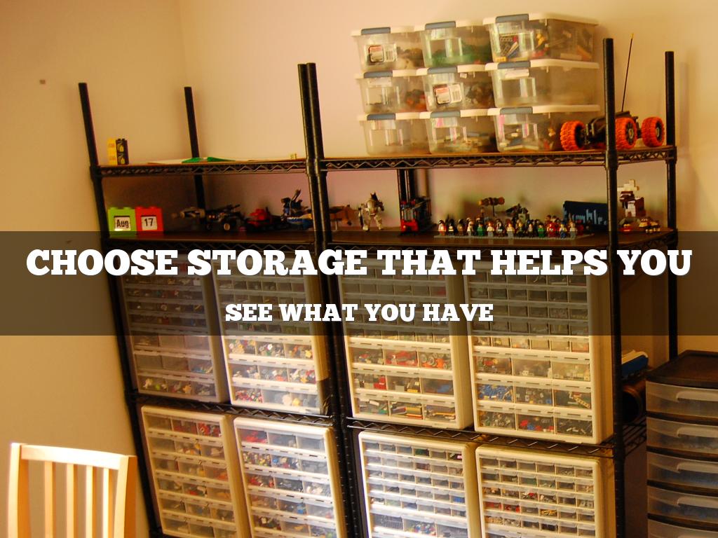 Select organizational and storage products that provide maximum visibility so you can see and know exactly what you have and where things are. Visual cues work well for you - so aim for acrylic or see-through storage containers so you can 'see what you have'.