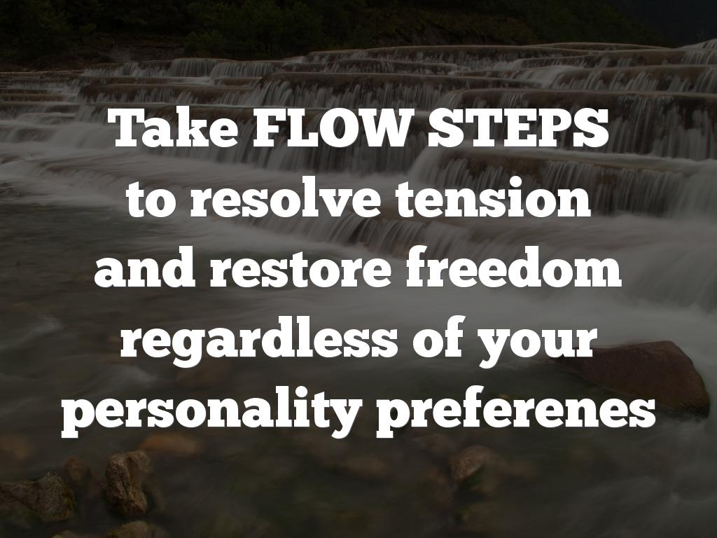 Flow Steps help you resolve your tension both in the dimensions of time and space. When you know what your natural preferences are, you can begin to take style-specific steps to integrate more Flow into your experience.