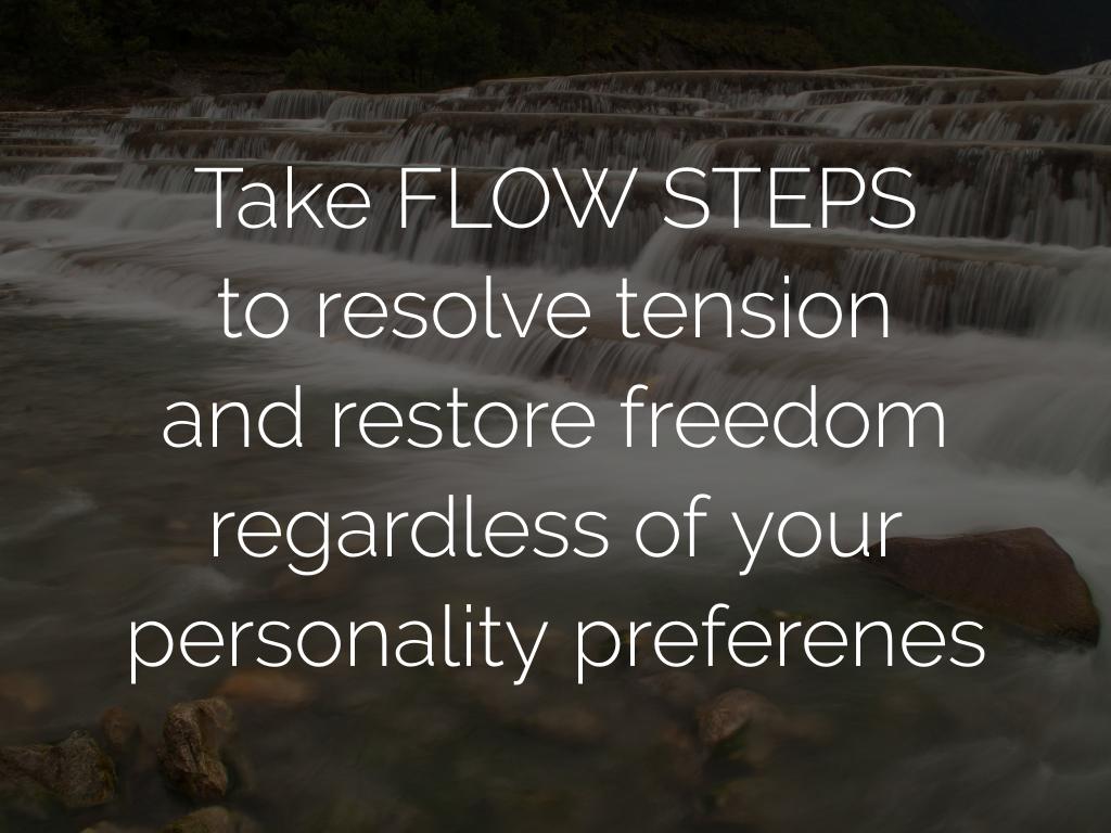 Flow Steps help you resolve your tension both in the dimensions of time and space. When you know what your natural preferences are, you can begin to take style-specific steps to integrate more Flow into your experience.