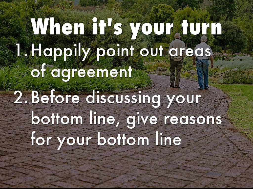 - Before or instead of discussing your bottom line, give the reasons for your bottom line