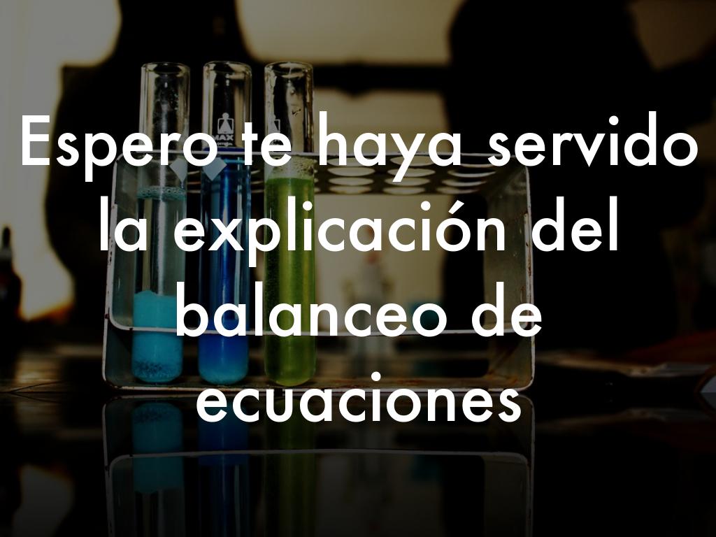 Espero te haya servido la explicación del balanceo de ecuaciones