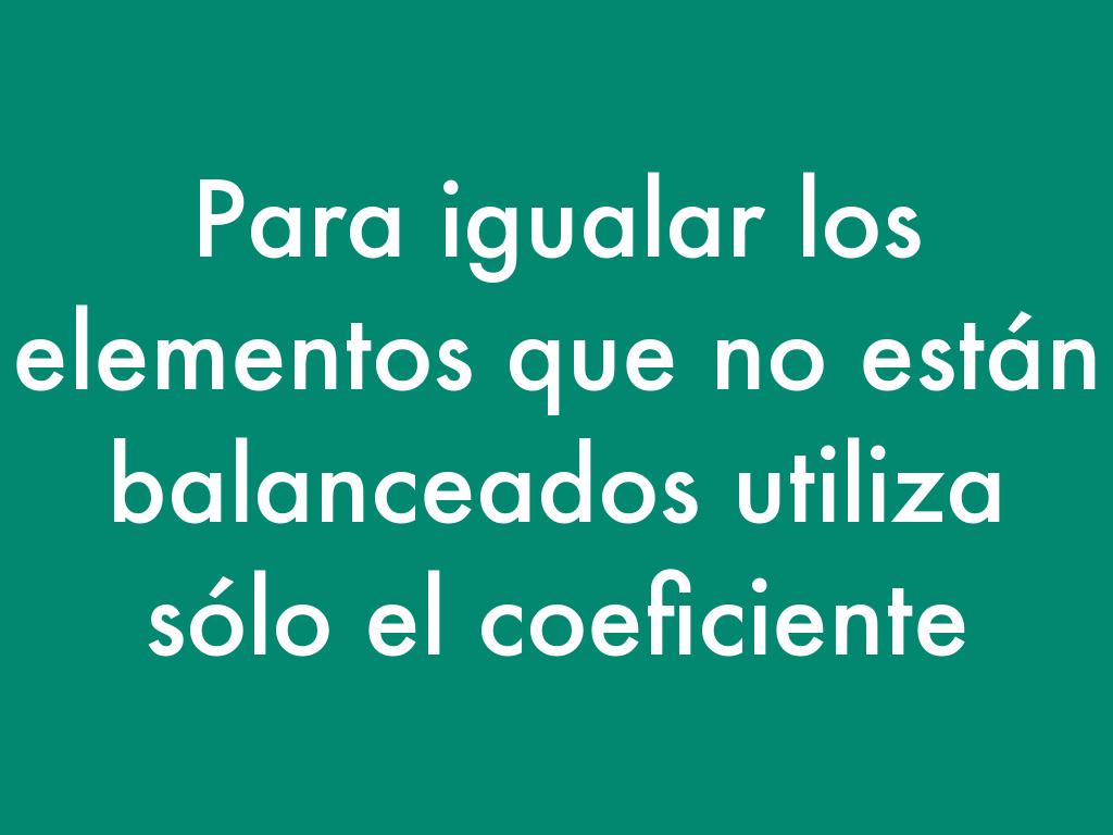 Para igualar los elementos que no están balanceados utiliza sólo el coeficiente