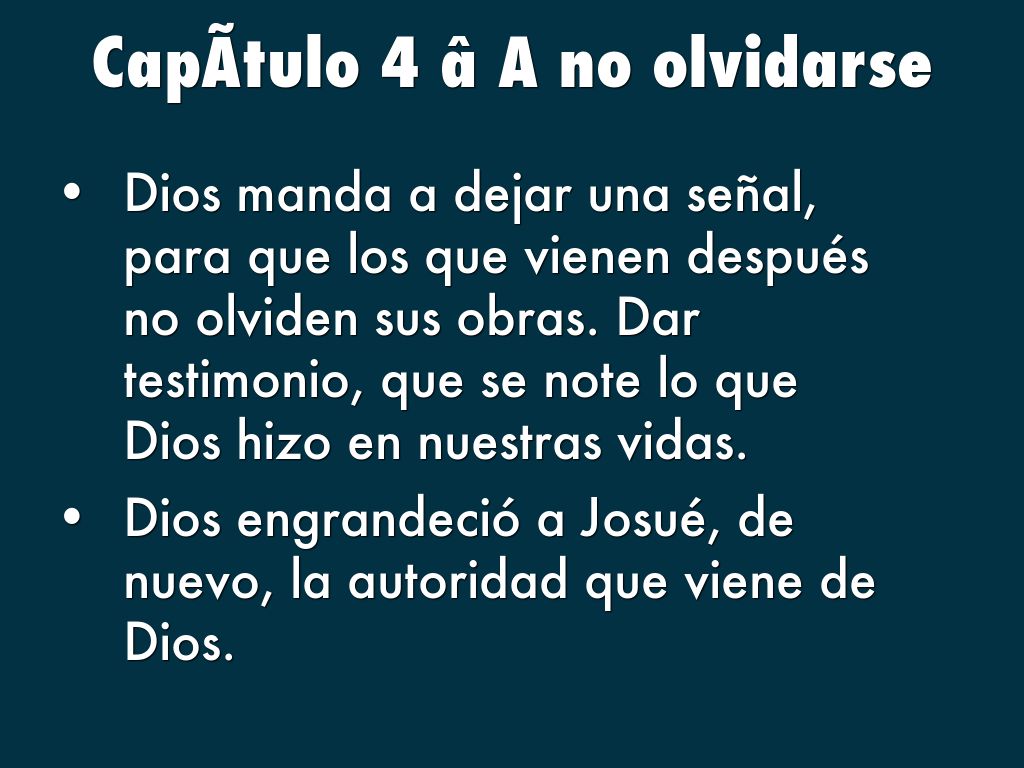 • Dios engrandeció a Josué, de nuevo, la autoridad que viene de Dios.