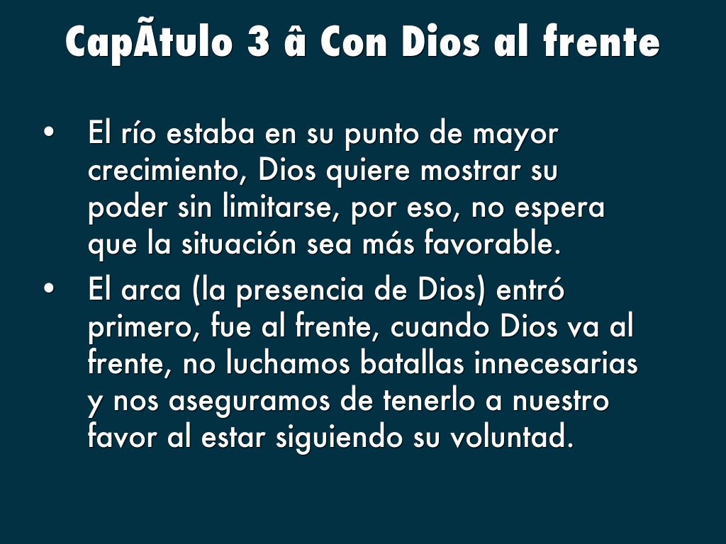 • El arca (la presencia de Dios) entró primero, fue al frente, cuando Dios va al frente, no luchamos batallas innecesarias y nos aseguramos de tenerlo a nuestro favor al estar siguiendo su voluntad.