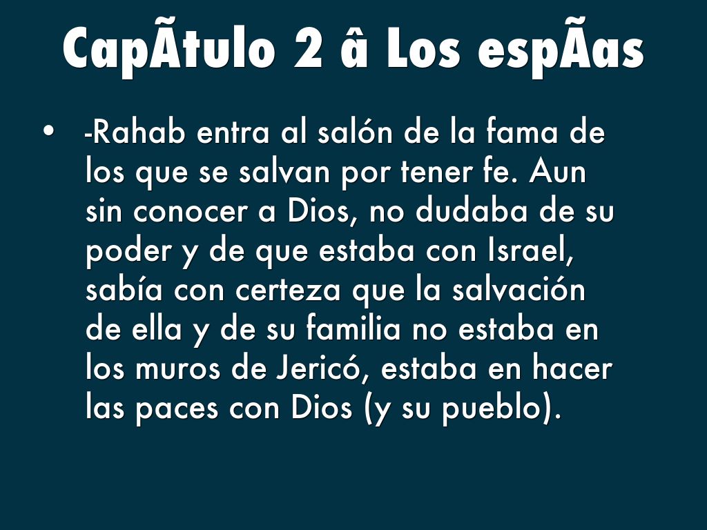 • -Rahab entra al salón de la fama de los que se salvan por tener fe. Aun sin conocer a Dios, no dudaba de su poder y de que estaba con Israel, sabía con certeza que la salvación de ella y de su familia no estaba en los muros de Jericó, estaba en hacer las paces con Dios (y su pueblo).