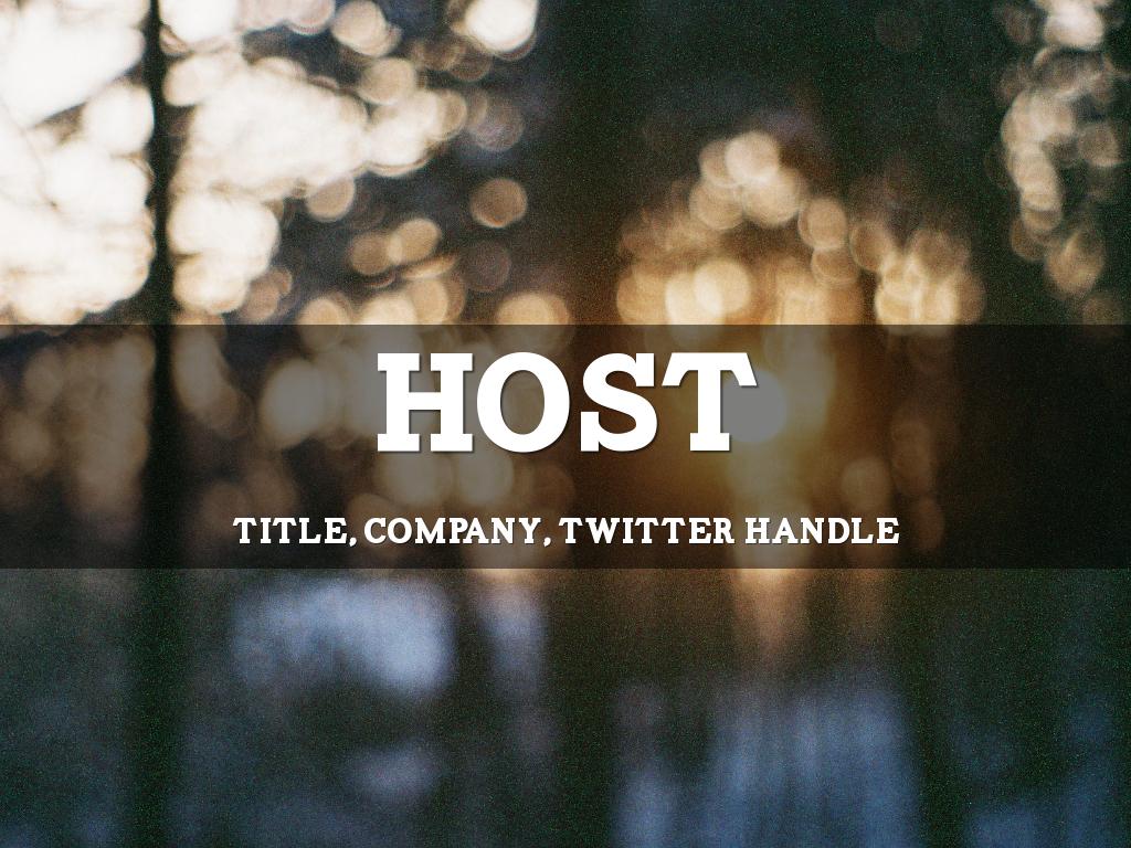 Include contact information on the host of the webinar; their job title, website, Twitter handle, and anything else you'd like to include.