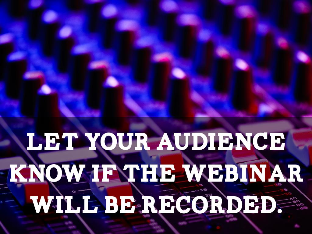 If the webinar will be recorded for playback at a later time, make sure to let your audience know.