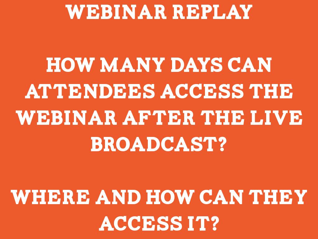 Can your audience replay the webinar after the live broadcast? Let them know where and how long it will be available for viewing after the live broadcast.