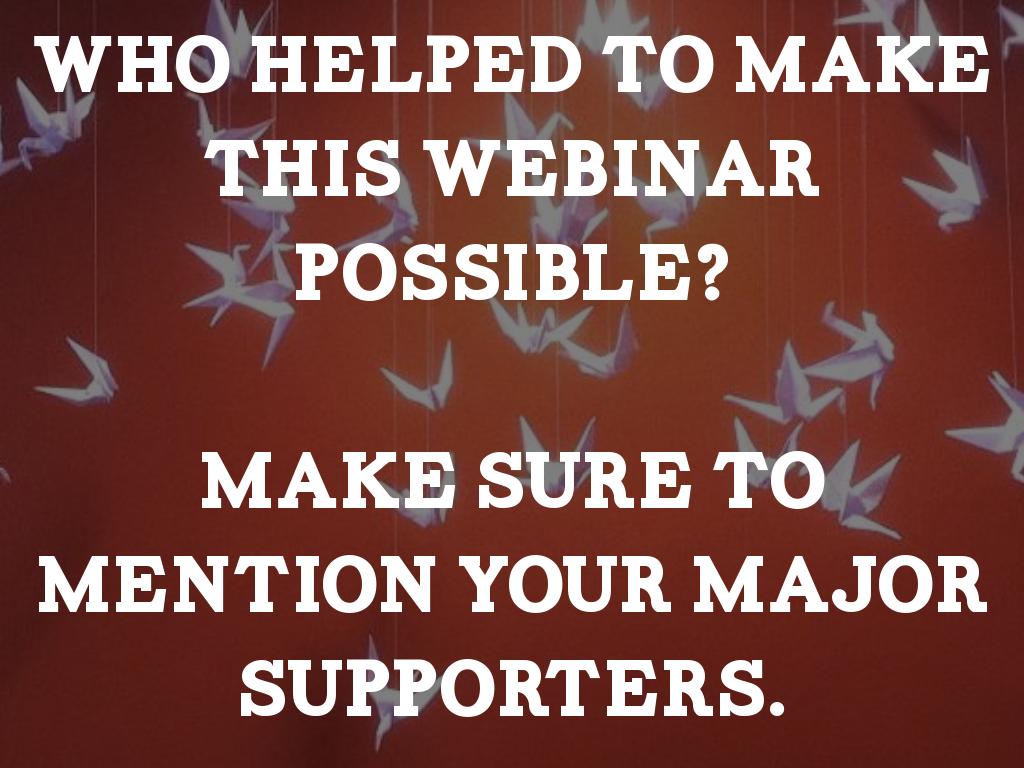 Make sure to include a slide mentioning your major sponsors and supporters.