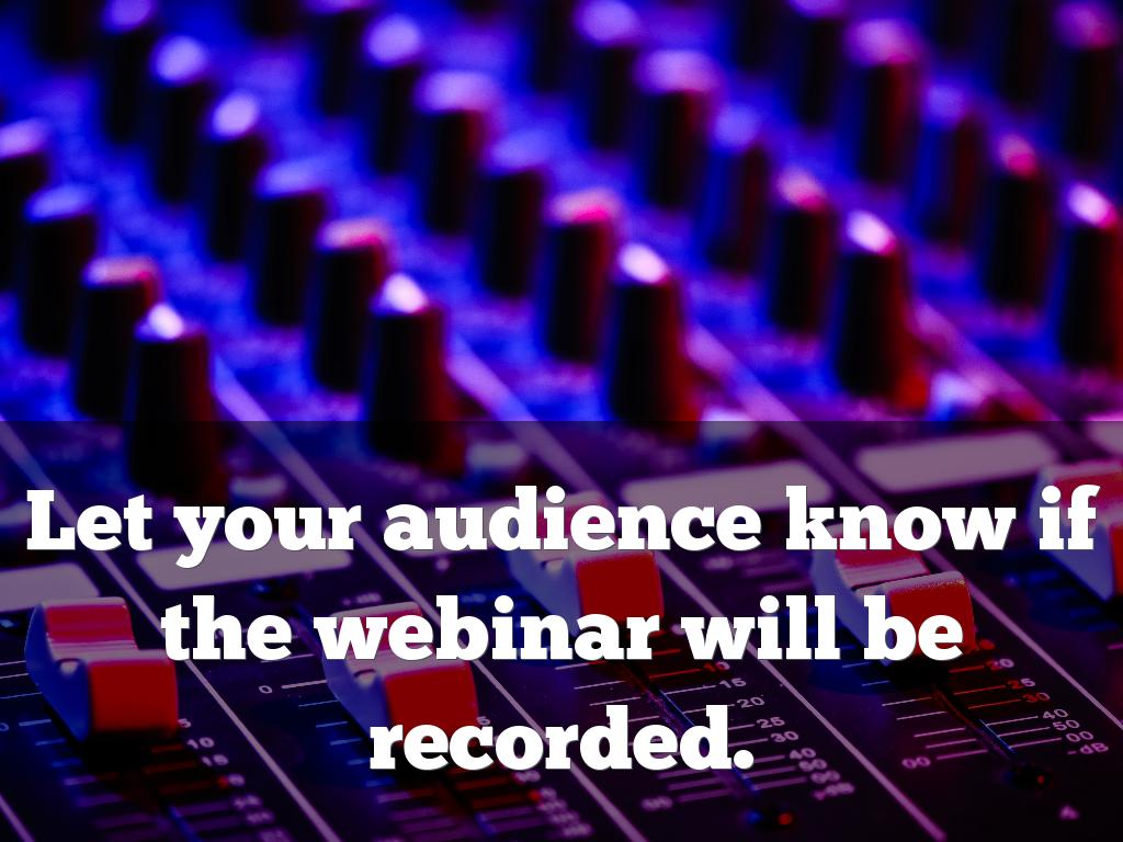 Let your audience know if the webinar will be recorded.