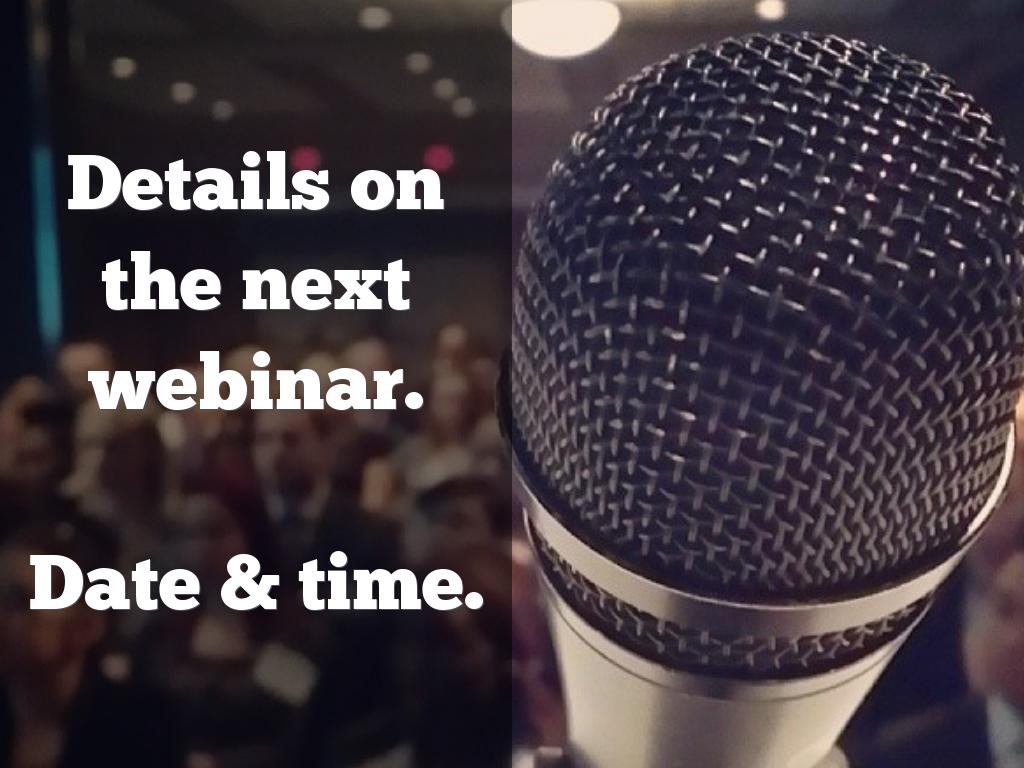 Details on the next webinar.