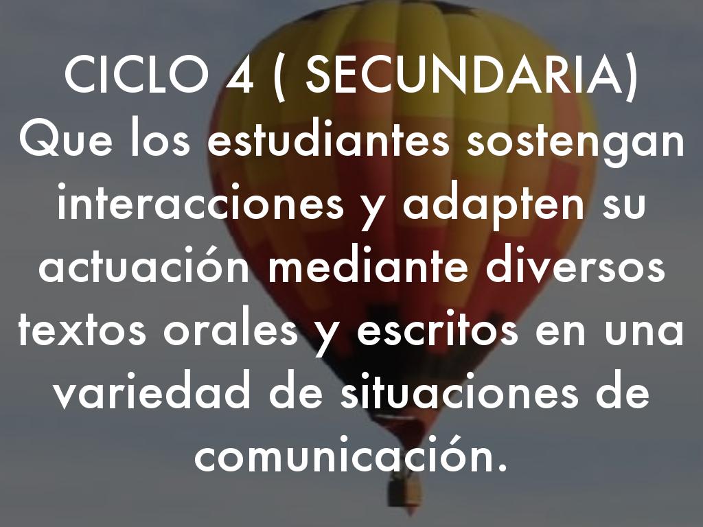 CICLO 4 ( SECUNDARIA) Que los estudiantes sostengan interacciones y adapten su actuación mediante diversos textos orales y escritos en una variedad de situaciones de comunicación.
