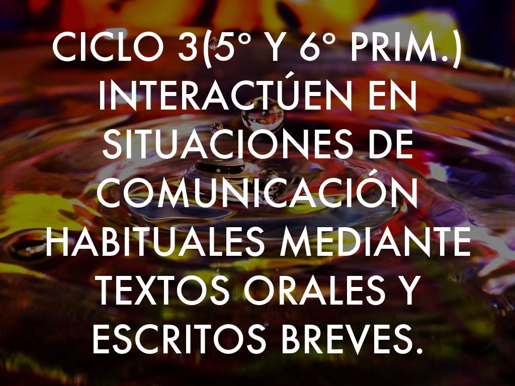 CICLO 3(5º Y 6º PRIM.) INTERACTÚEN EN SITUACIONES DE COMUNICACIÓN HABITUALES MEDIANTE TEXTOS ORALES Y ESCRITOS BREVES.