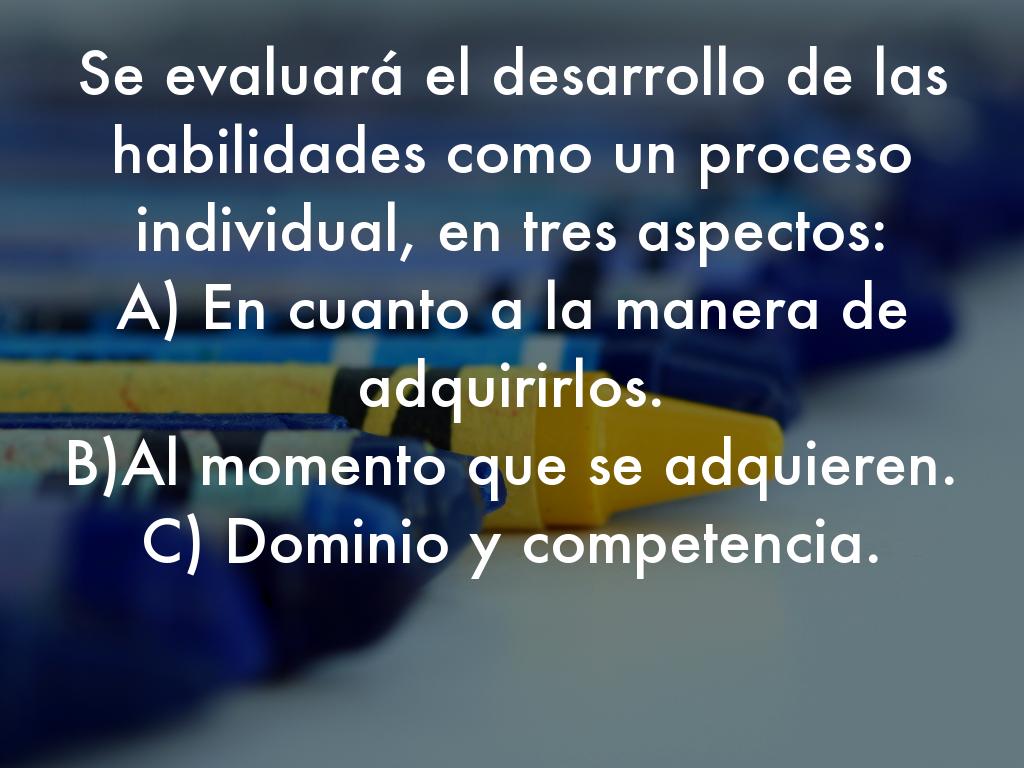 Se evaluará el desarrollo de las habilidades como un proceso individual, en tres aspectos: