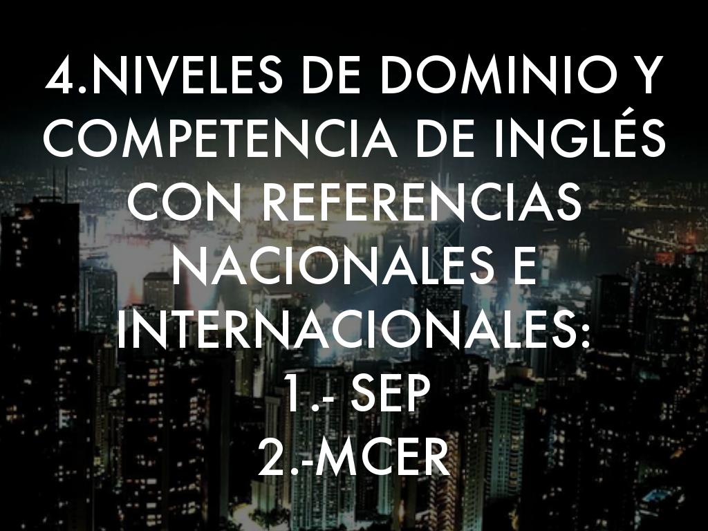 4.NIVELES DE DOMINIO Y COMPETENCIA DE INGLÉS CON REFERENCIAS NACIONALES E INTERNACIONALES: