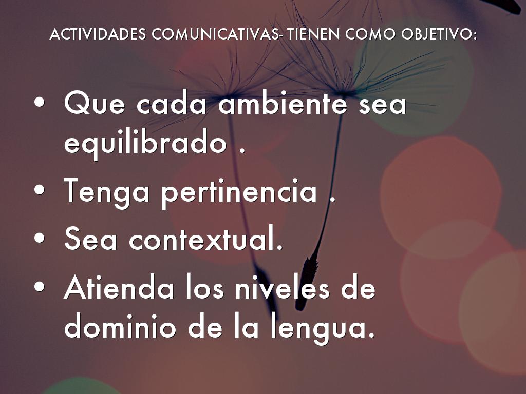 ACTIVIDADES COMUNICATIVAS- TIENEN COMO OBJETIVO: