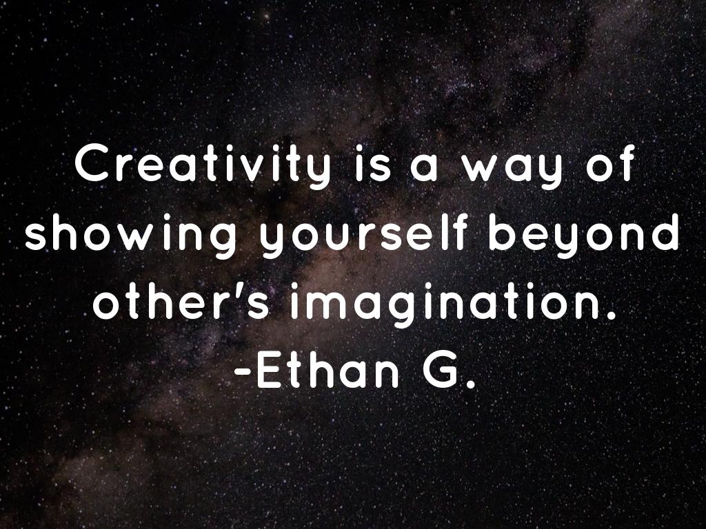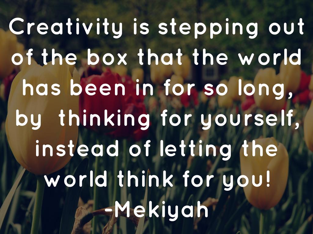 Creativity is stepping out of the box that the world has been in for so long, by thinking for yourself, instead of letting the world think for you! -Mekiyah