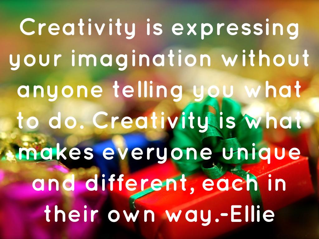 Creativity is expressing your imagination without anyone telling you what to do. Creativity is what makes everyone unique and different, each in their own way.-Ellie