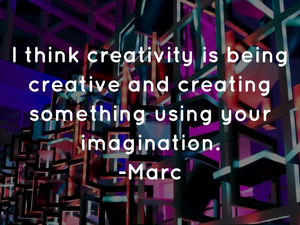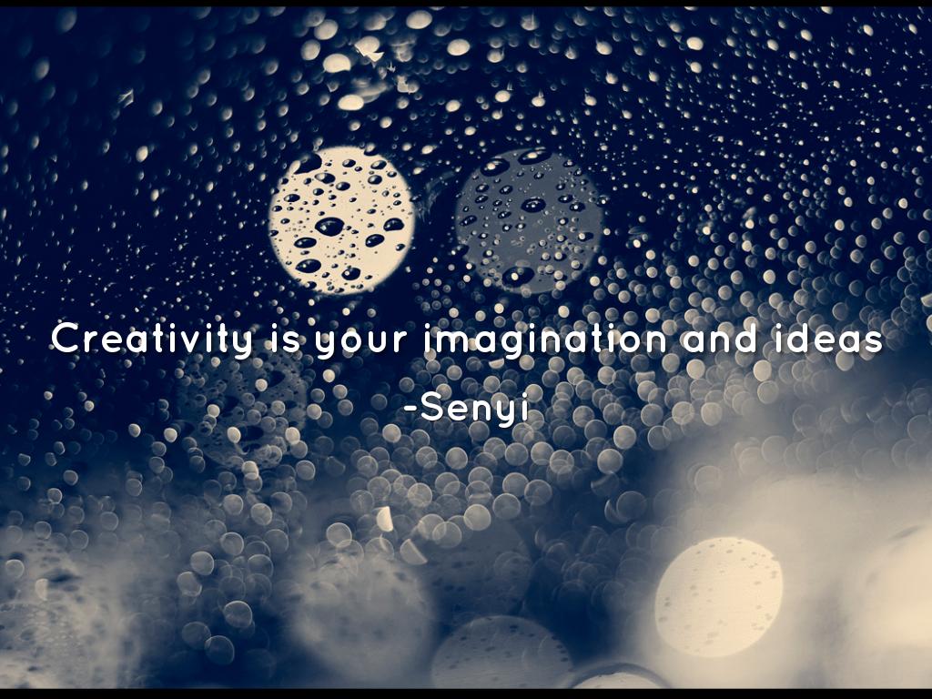 Creativity is when you cleverly brainstorm stuff in your mind and put it on a piece of paper. As Albert Einstein once said, "Imagination is everything, it's the preview of life's coming attractions" By: Saahas