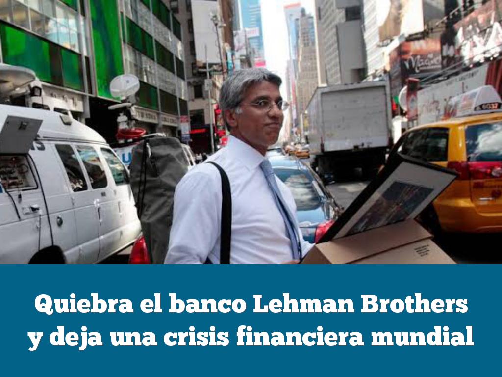 Quiebra el banco Lehman Brothers y deja una crisis financiera mundial