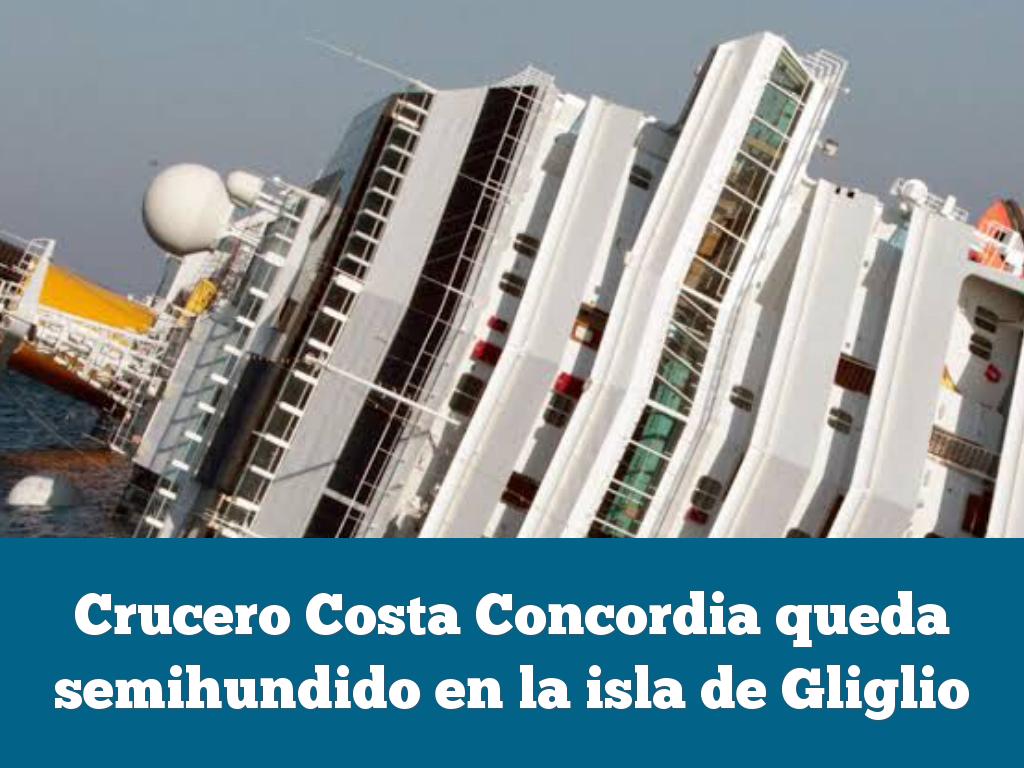 Crucero Costa Concordia queda semihundido en la isla de Gliglio
