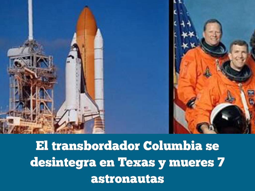 El transbordador Columbia se desintegra en Texas y mueres 7 astronautas