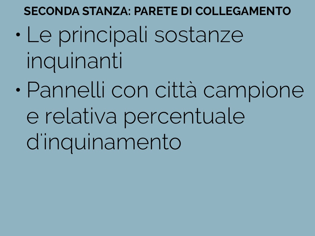 Pannelli con città campione e relativa percentuale d'inquinamento