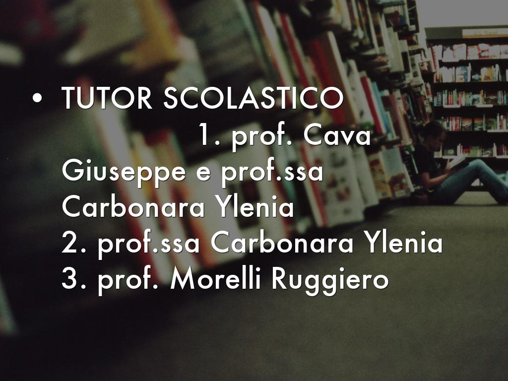 TUTOR SCOLASTICO 1. prof. Cava Giuseppe e prof.ssa Carbonara Ylenia 2. prof.ssa Carbonara Ylenia 3. prof. Morelli Ruggiero