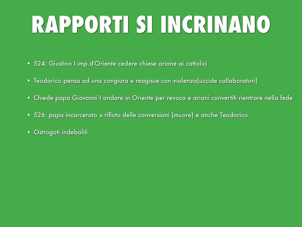 526: papa incarcerato x rifiuto delle conversioni (muore) e anche Teodorico