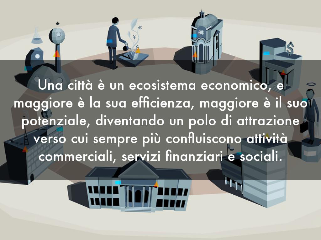 Una città è un ecosistema economico, e maggiore è la sua efficienza, maggiore è il suo potenziale, diventando un polo di attrazione verso cui sempre più confluiscono attività commerciali, servizi finanziari e sociali.