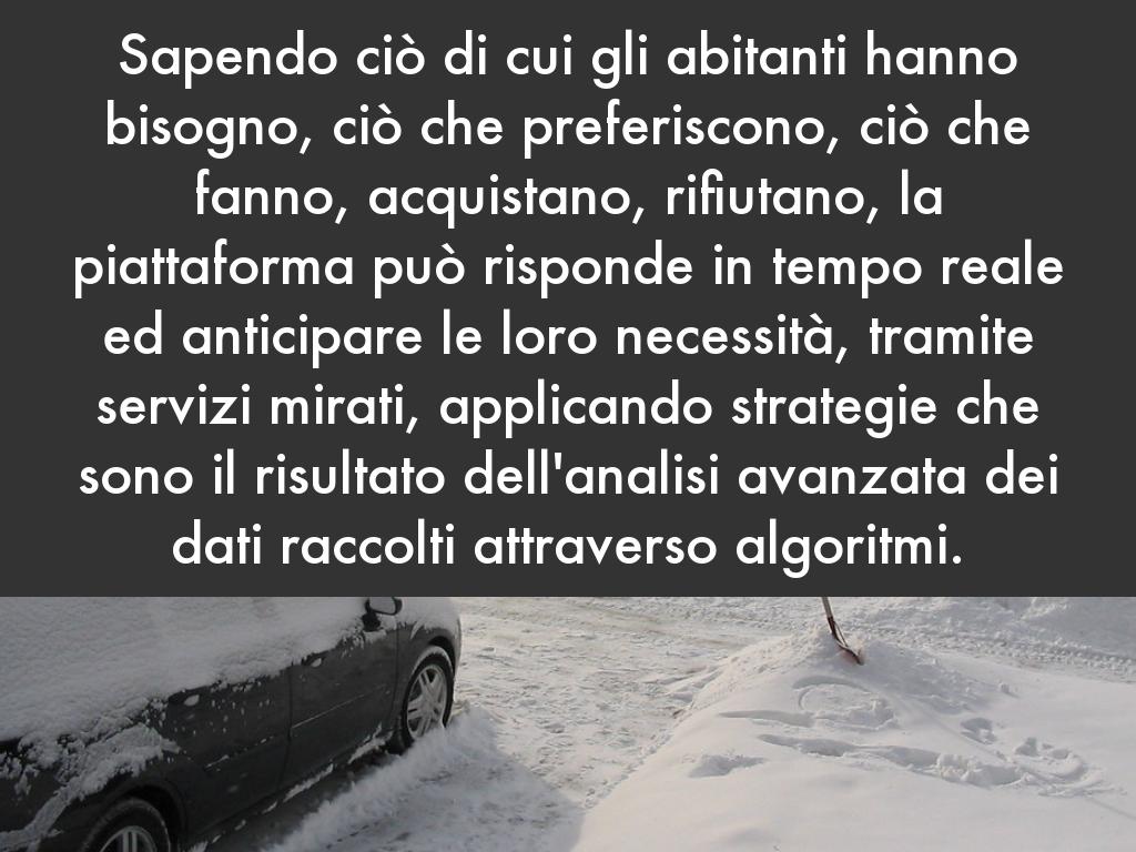 Sapendo ciò di cui gli abitanti hanno bisogno, ciò che preferiscono, ciò che fanno, acquistano, rifiutano, la piattaforma può risponde in tempo reale ed anticipare le loro necessità, tramite servizi mirati, applicando strategie che sono il risultato dell'analisi avanzata dei dati raccolti attraverso algoritmi.