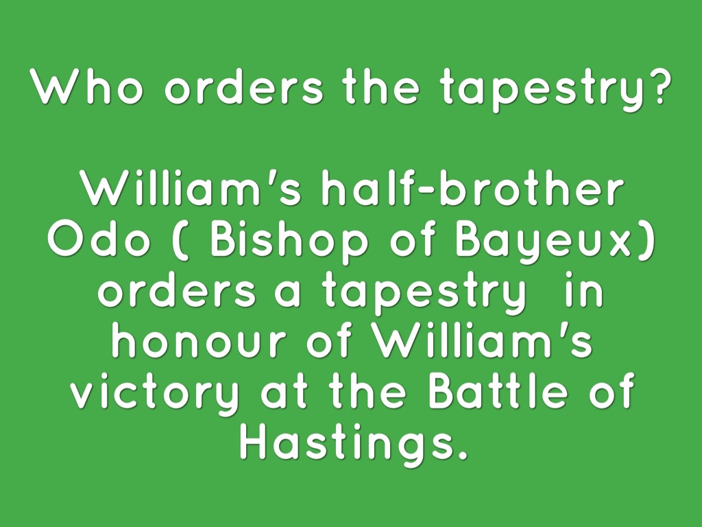 William's half-brother Odo ( Bishop of Bayeux) orders a tapestry in honour of William's victory at the Battle of Hastings.