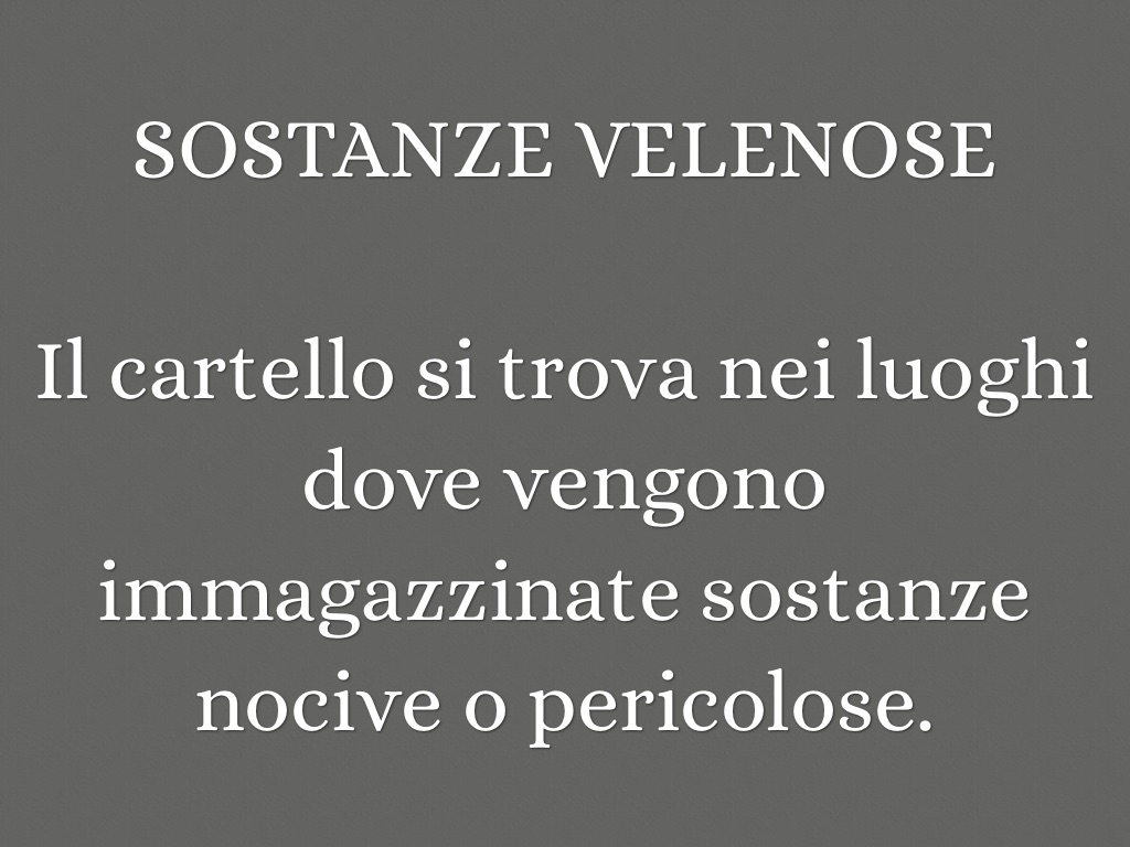 Il cartello si trova nei luoghi dove vengono immagazzinate sostanze nocive o pericolose.