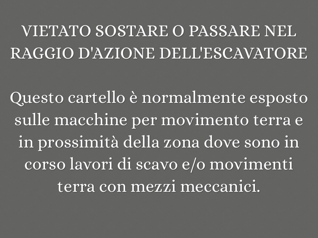 Questo cartello è normalmente esposto sulle macchine per movimento terra e in prossimità della zona dove sono in corso lavori di scavo e/o movimenti terra con mezzi meccanici.