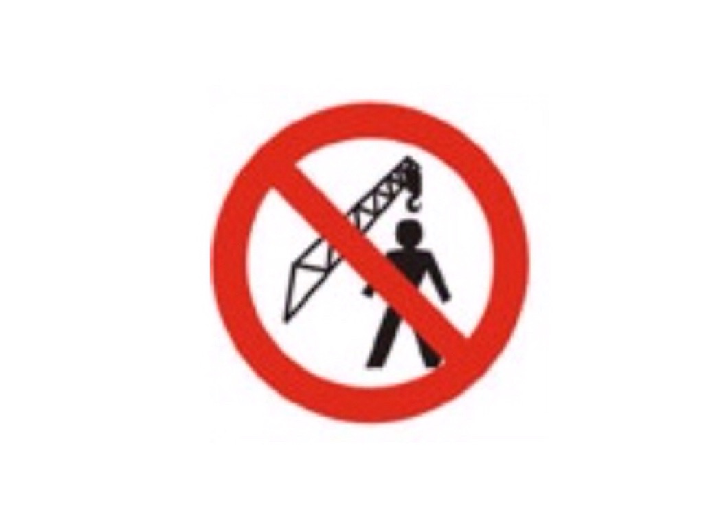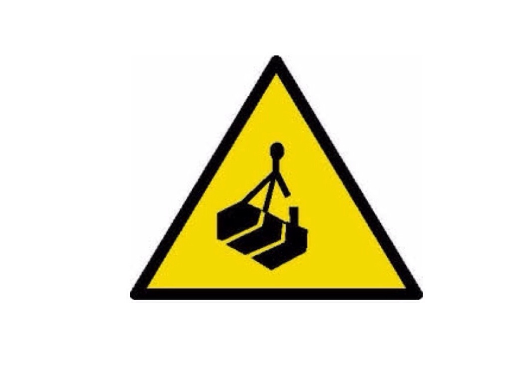 Le manovre per il sollevamento dei carichi pesanti devono essere disposte in modo da evitare il passaggio dei carichi sospesi sopra i lavoratori ed i luoghi per i quali l'eventuale caduta dei carichi può costituire pericolo. Questo cartello è normalmente esposto nei posti di sollevamento dei materiali.