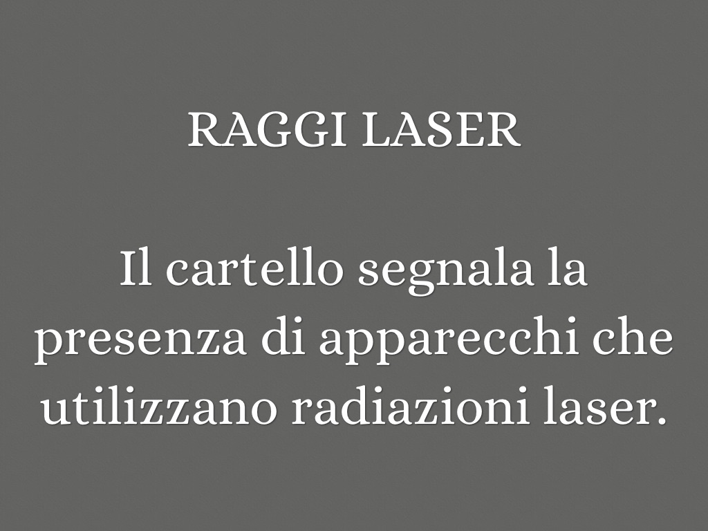 Il cartello segnala la presenza di apparecchi che utilizzano radiazioni laser.