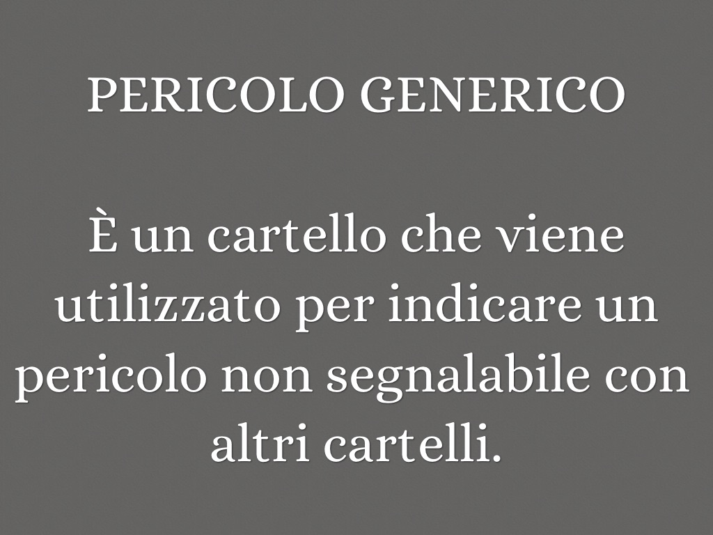 Questo cartello indica un pericolo non segnalabile con altri cartello.
