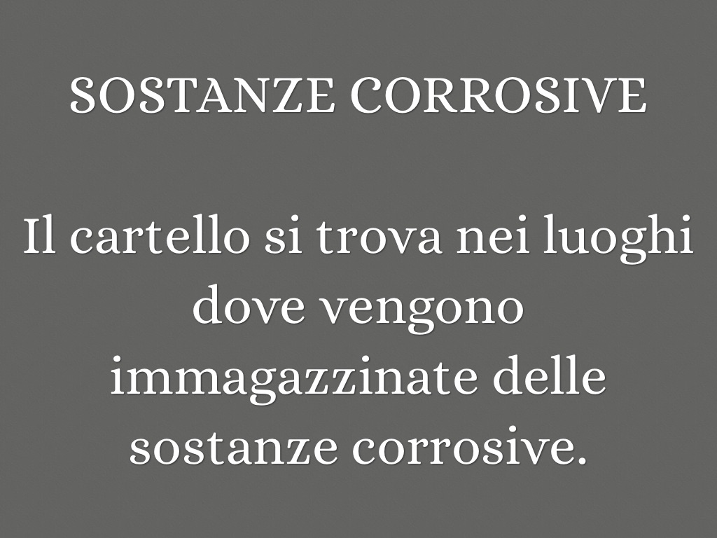 Il cartello si trova nei luoghi dove vengono immagazzinate delle sostanze corrosive.