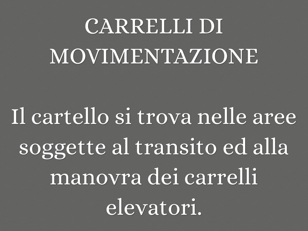 Il cartello si trova nelle aree soggette al transito ed alla manovra dei carrelli elevatori.