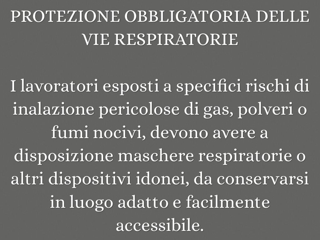 PROTEZIONE OBBLIGATORIA DELLE VIE RESPIRATORIE