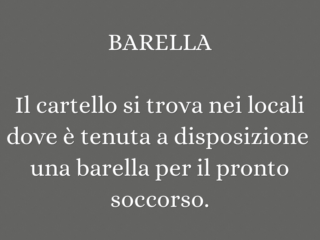 Il cartello si trova nei locali dove è tenuta a disposizione una barella per il pronto soccorso.