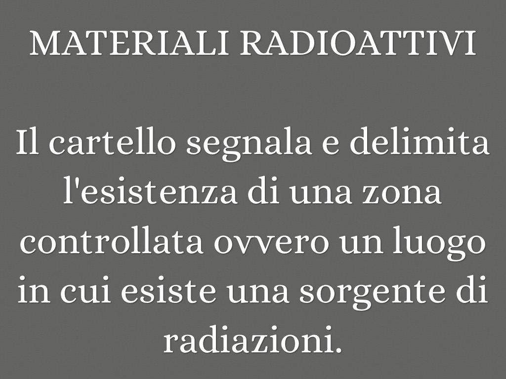 Il cartello segnala e delimita l'esistenza di una zona controllata ovvero un luogo in cui esiste una sorgente di radiazioni.