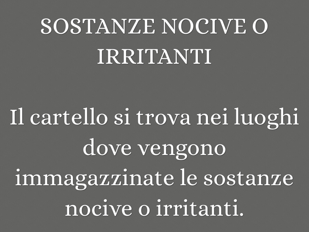 Il cartello si trova nei luoghi dove vengono immagazzinate le sostanze nocive o irritanti.