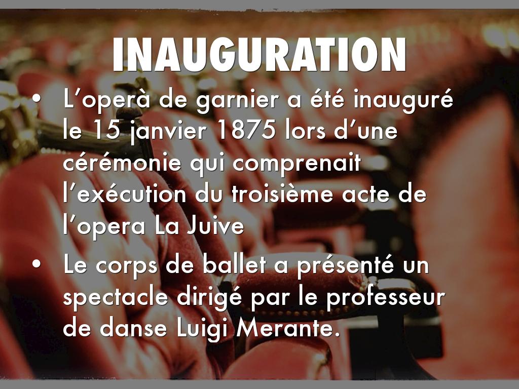 L’operà de garnier a été inauguré le 15 janvier 1875 lors d’une cérémonie qui comprenait l’exécution du troisième acte de l’opera La Juive