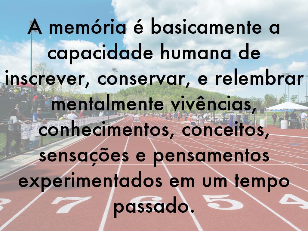 A memória é basicamente a capacidade humana de inscrever, conservar, e relembrar mentalmente vivências, conhecimentos, conceitos, sensações e pensamentos experimentados em um tempo passado.