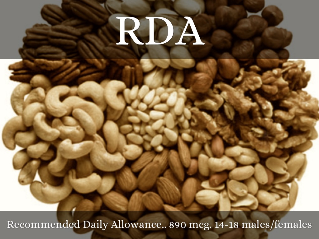 Recommended Daily Allowance.. 890 mcg. 14-18 males/females