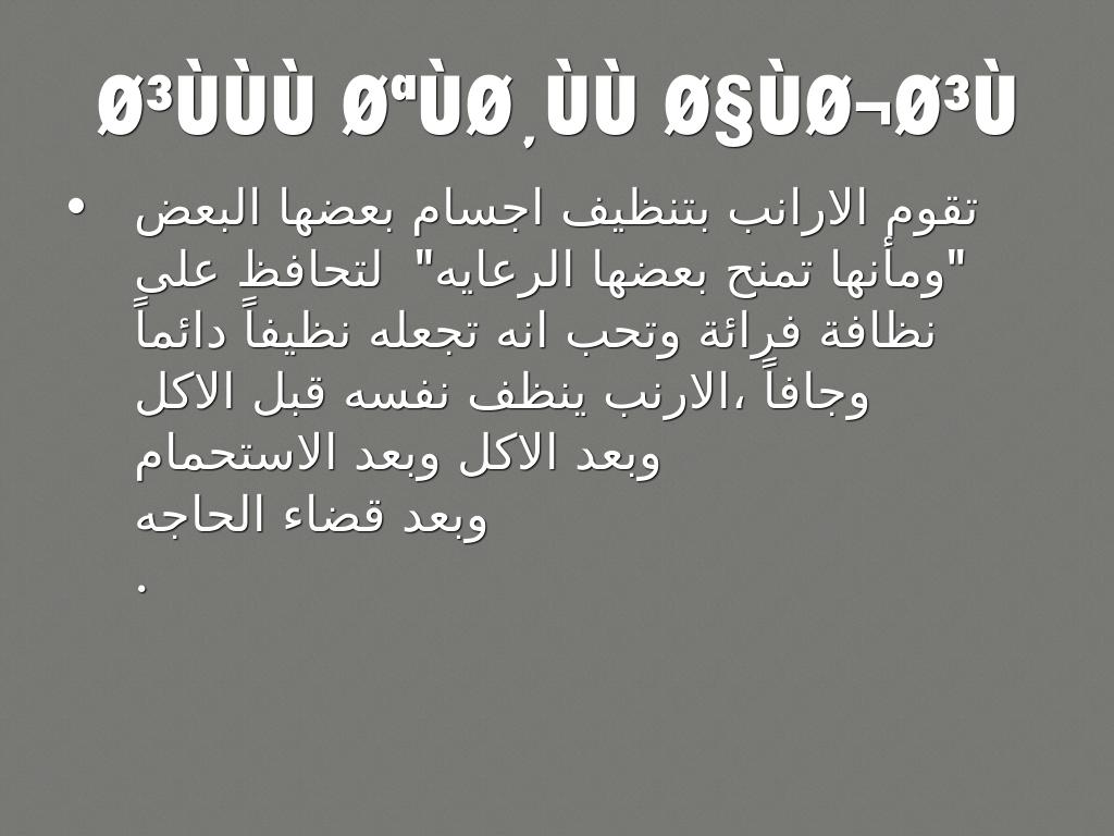 تقوم الارانب بتنظيف اجسام بعضها البعض "ومأنها تمنح بعضها الرعايه" لتحافظ على نظافة فرائة وتحب انه تجعله نظيفاً دائماً وجافاً ،الارنب ينظف نفسه قبل الاكل وبعد الاكل وبعد الاستحمام